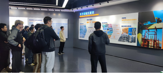 在此次参观学习中,智能建造微专业的同学们参观了基地的智能建造展厅和生产车间自动化生产线。同学们亲眼见证了智能建造技术的神奇魅力:数控智能钢筋加工设备精准高效,自动化生产线流畅快捷,智能化的信息管理系统则让一切变得井然有序。这些高科技设备的运用,不仅提高了生产效率和产品质量,还有效降低了人工成本和安全隐患,让同学们对智能建造技术的未来充满了期待。随后,基地的技术专家为同学们详细介绍了智能建造技术的发展历程、技术特点和应用前景,用一个个鲜活的实例展示了智能建造技术在现代工程建设中的巨大潜力。