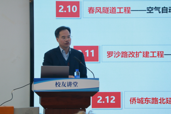 校友讲堂在实验二号楼520举行。本次校友讲堂邀请了84级路桥专业校友谢勇利为同学们分享,谢勇利校友为广东省工程勘察设计大师,路桥专业教授级高工,深圳市综合交通与市政工程设计研究总院有限公司党委书记、董事长。本次活动共计120余名师生参与,讲座由学院校友办主任曾阅主持。