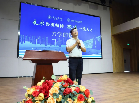 然后,何嘉年副院长为同学们做了题为“从身边的建筑领略力学的魅力”的讲座,用风趣幽默的语言,通过日常生活中的各种事物来解释建筑中的力学原理,如竹子与超高型建筑、鸡蛋与薄壳结构、蜘蛛网与索网结构、气球与气膜结构等,引起了同学们的阵阵惊叹,也激发了同学们对土木建筑浓厚的兴趣。