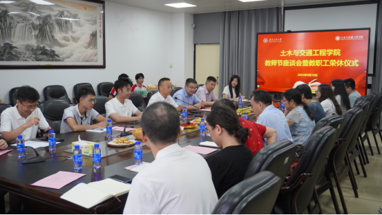 举办2024年教师节座谈会暨教职工荣休仪式,学院党委书记周建强、院长赵志伟、荣休教师、教育工作满30年教师及新入职教职工参加了会议。