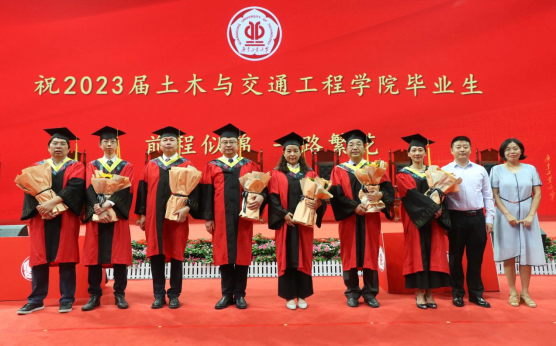 院长赵志伟教授、副院长郭永昌教授、土木工程系李丽娟教授、测绘工程系吴希文教授、岩土工程研究所杨雪强教授、道桥与交通运输系姜海波教授、城市公用设备系王志红教授作为授位嘉宾出席仪式。各系所负责人代表、毕业生班班主任代表、辅导员代表以及700余名毕业生参加了学位授予仪式,仪式由学院党委副书记陈颂坚主持。