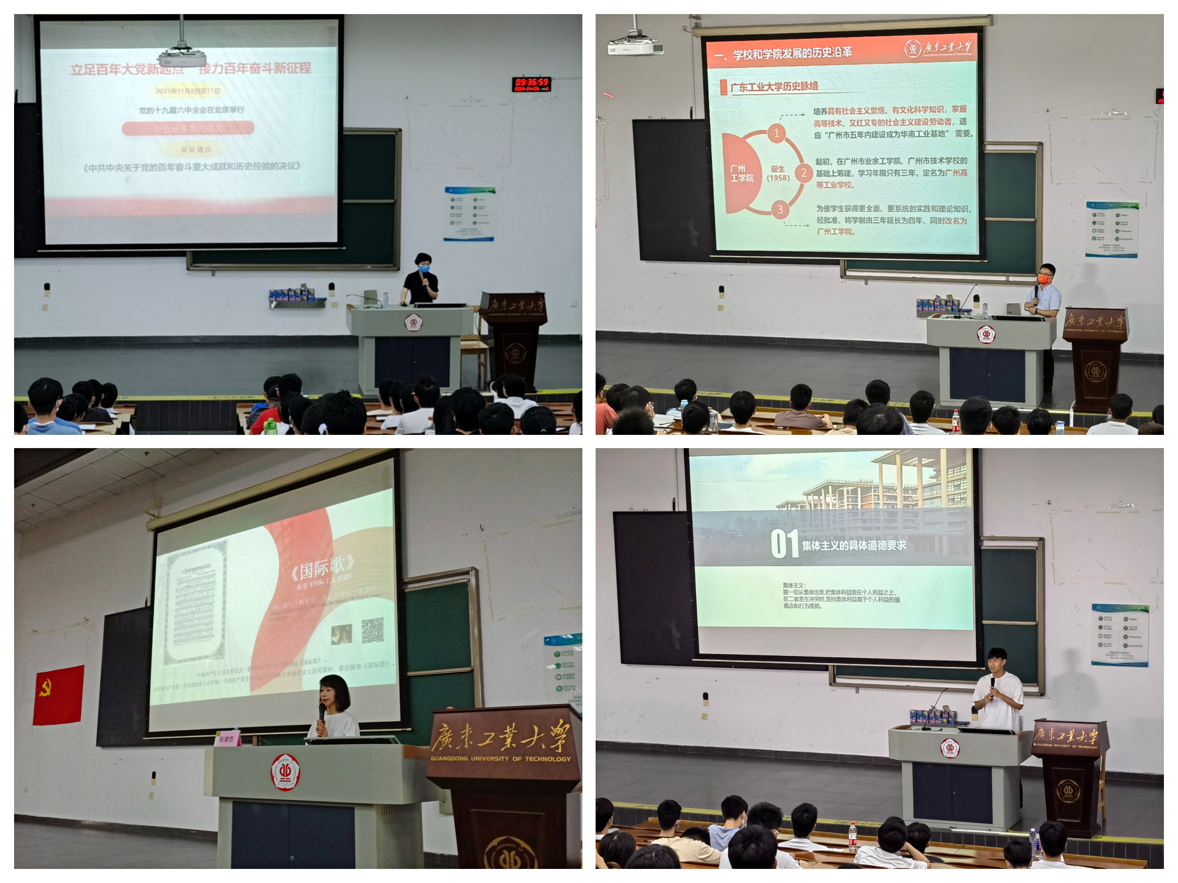 校史中的红色基因》,分享广工第一任党委书记曾志的革命故事,老院长麦蕴瑜与东深供水工程建设的故事,希望学员们了解广工红色基因,了解学院历史,知校爱校;学校表演专业教师张濬哲以《音乐舞蹈中的红色经典》为题,讲授建党以来的红色音乐舞蹈的创作历程,带领学员了解红色经典音乐舞蹈背后的革命故事;学院党建组织员刘思利给大家讲解入党流程;2018级土木工程学生祝之竞分享其个人学习马克思主义、中国共产党党史的方法和经验。