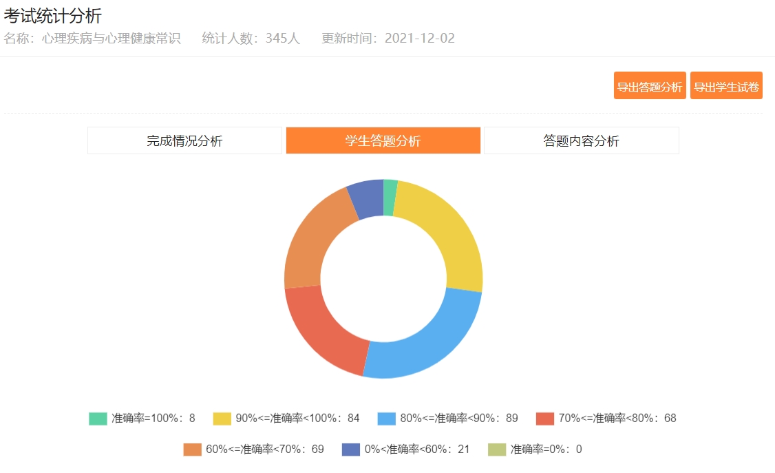 通过进行“心理疾病与心理健康常识”主题板块答题,提高了学生整体心理健康知识水平,向同学们普及了心理健康知识,有利于同学们正确认识与应对心理疾病。