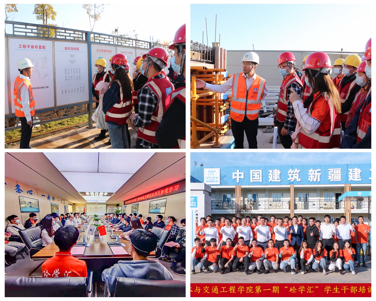 12月4日,“砼心”班全体学员和“砼德”班、“砼力”班学员代表37人在学院团委杨刚老师、马京帅老师的带领下,走进学院党建“五联共建”合作企业中建新疆建工华南公司广州龙城国际康复医院项目部参观调研。华南公司党委副书记、纪检书记、工会主席王西朝亲自接待了师生一行。在项目部会议室,在王西朝书记的讲解下大家观看了中建新疆建工集团宣传片、了解了企业发展历史和现状,紧接着龙城医院项目经理杨凯睿先生向大家详细介绍了项目的工程概况、新型施工工艺、攻克的技术难关、先进施工管理经验以及党团组织建设等情况。同学们结合自己的专业知识,积极咨询项目的相关技术难点和方法,并得到了项目经理和总工程师的细致解答,充实了对理论知识和工程实践的理解。随后,在项目部负责人的带领,师生们深入项目现场,了解了项目施工的进展情况。通过此次参观调研活动,大家对龙城医院工程项目先进的施工工艺、管理模式和央企党团组织建设有了更加深入的了解,开阔了专业视野,对央企在经济社会建设中展现出的责任与担当有了切身体会,也激发了大家投身新时代土木工程建设的热情。