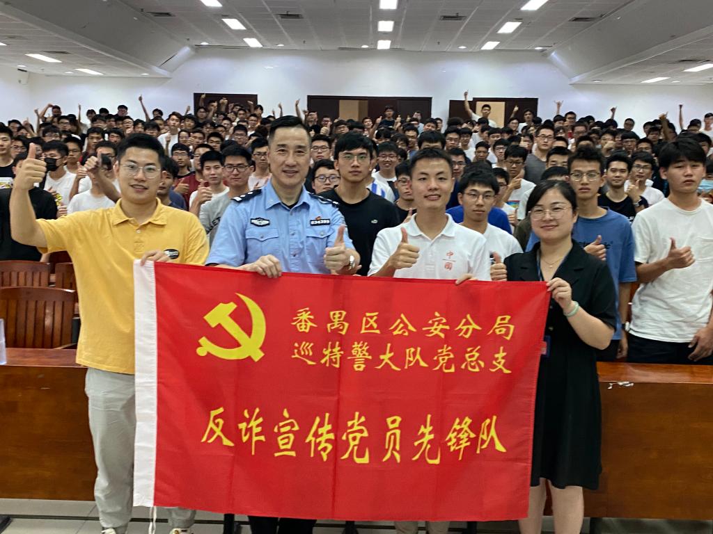 邀请番禺区巡特警大队二级警长、反诈中心宣讲团王鑫警官在5号大教室开展“反诈骗”宣传讲座,我院19级全体同学有幸聆听了此次讲座。