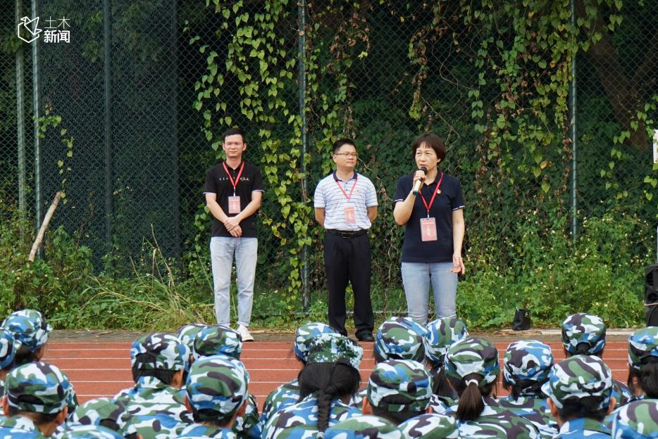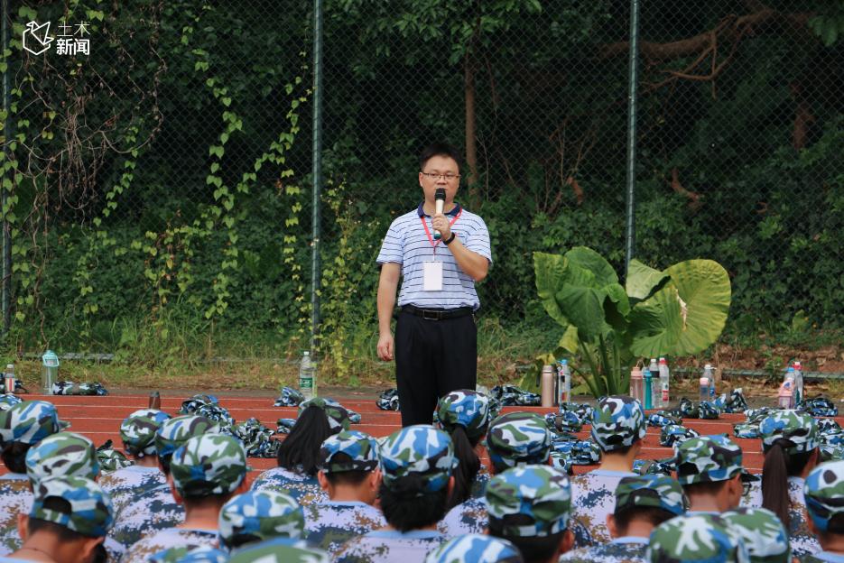 邓俊书记和陈颂坚副书记在向辅导员和教官认真地了解同学们的军训情况和进展后,对同学们的军训生活做出指导讲话。邓俊书记从军训的两个重要性讲起:一是要加强大学生国防教育,尤其是当今全球处于百年未有之大变局,国际形势非常复杂,军强才能国安;二是希望通过军训磨练同学们的意志力,为学生今后的学习和工作储备抗压能力。同时书记也提醒同学们在军训中要注意防暑降温,保护自己并希望同学在军训过程中能够团结互助,拥有严明的纪律要求。在讲话的最后邓俊党委书记对同学给予高度期待,希望同学们能在教官的悉心指导下刻苦训练,用脚力、眼力、脑力走好每一步,齐心协力踏出整齐步伐,在阅兵仪式上以飒爽英姿、整齐步伐,充分展示土木学子的风采!