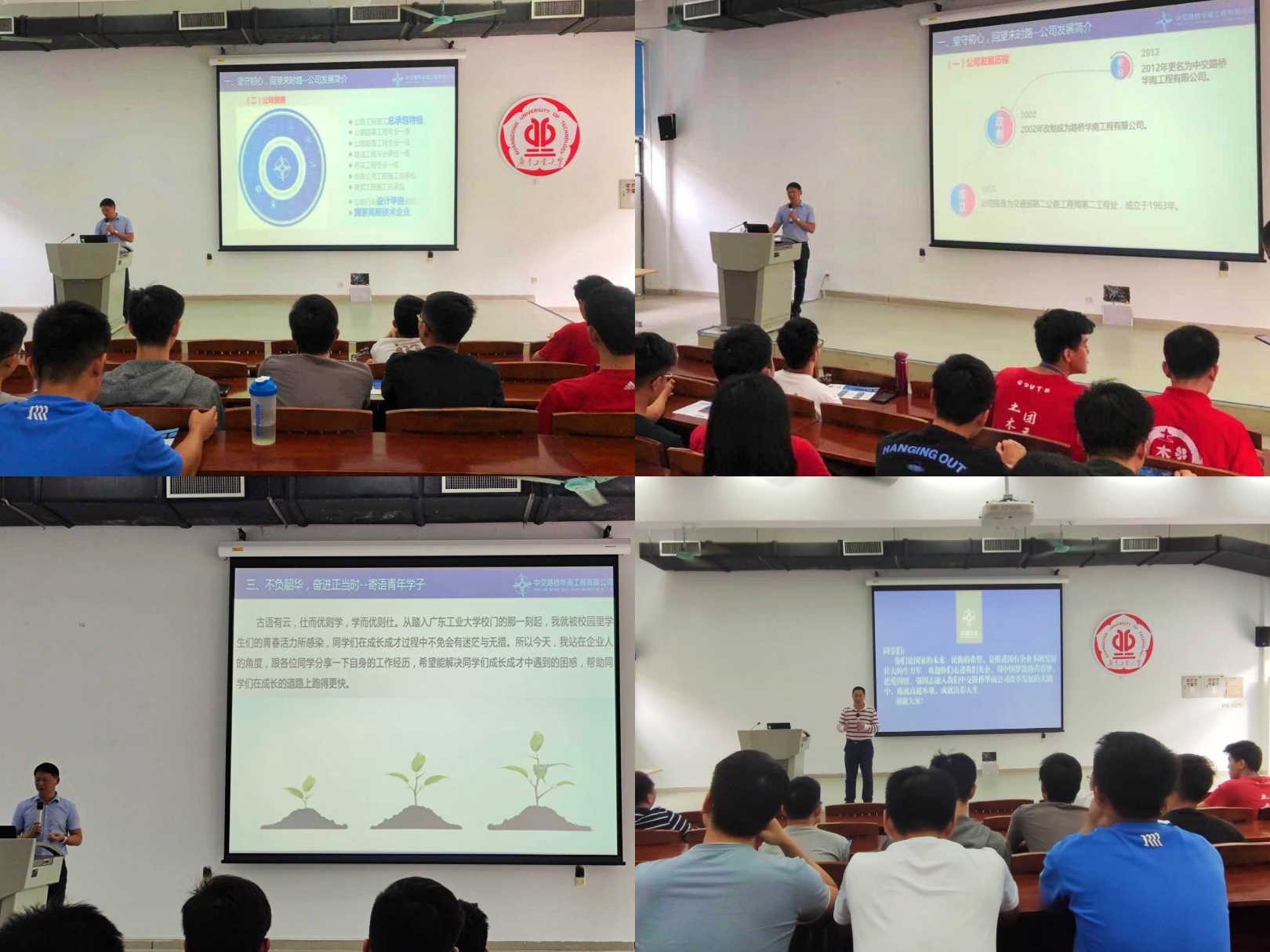 会上,吴建峰先生结合公司现状和自身发展经历,详细讲解了公司的发展历程,紧扣品牌工程和在建工程并结合相关案例,为同学们提出了许多实用性的建议。紧接着,针对公司近几年的业绩分析,他从品牌优势、文化优势、区位优势、平台优势这四个方面展开叙述,与在座的同学们分享了成长为一名优秀的基础设施建设者应该具备的素养和能力,同时帮助同学们解答了成长成才过程中遇到的困惑。最后,他寄语同学们:“不负韶华,奋进正当时”,希望同学们能坚守初心,勇于担当并不断地强化自身的创新意识,练就高超本领,成就出彩人生。