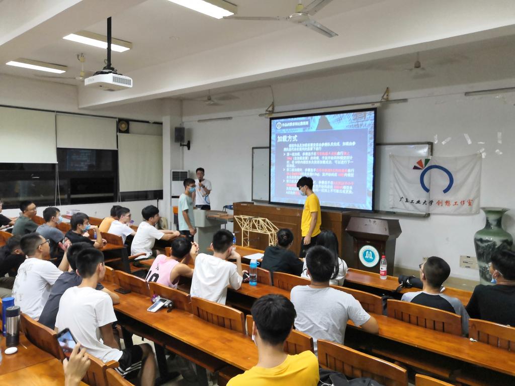 为使参赛学生进一步了解结构设计竞赛,8月29日,我院于实验二号楼520会议室举行了结构设计竞赛初赛培训会。2018级何癸泽同学围绕结构设计竞赛由来、竞赛规则、赛题和技术要点进行了讲解,并结合往年的参赛作品,分享结构模型设计制作经验。曾获第十三届全国大学生结构设计竞赛二等奖的2017级封柄艮同学分享参赛经验和心得。他鼓励师弟师妹要善于学习借鉴并注重实践,结合所学知识充分发挥自己的创造力。9月13日,结构设计竞赛初赛在五号大教室如期举行,此次比赛吸引了63支队伍参与其中,每支参赛队伍的作品经过了初审、记录、加载试验等环节,择优参与决赛。