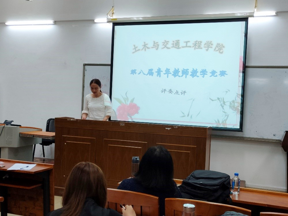 部门工会主办,学院副院长朱江教授,学院部门工会主席、工程力学研究所所长袁兵教授,校十佳授课教师王璋元教授,工程管理系系副主任、校十佳授课教师方媛老师,道桥与交通运输系系副主任、校十佳授课教师王小霞老师担任评委。我院40周岁以下(1979年8月31日以后出生)的青年教师全天进行了观摩学习。学院党委书记张育广、副院长何嘉年莅临比赛现场并进行了指导。
