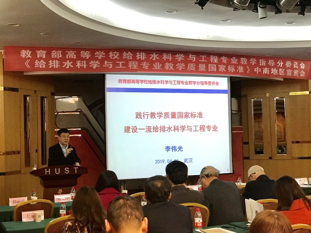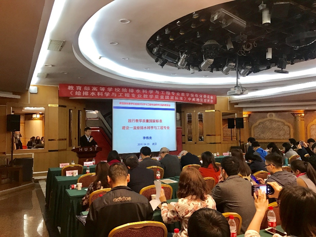 为深入学习教育部有关于《普通高等学校本科专业类教学质量国家标准》和《给排水科学与工程专业教育质量国家标准》,根据专业标准进一步修订完善人才培养方案,2019年3月31日至4月2日,我院副院长何嘉年副教授以及城市公用设备系系主任梅胜副教授、副主任李冬梅教授、“青年百人”秦雯博士赴武汉华中科技大学参加教育部高等学校给排水科学与工程专业教育指导分委会2019年《给排水科学与工程专业教育质量国家标准》中南地区宣贯会。