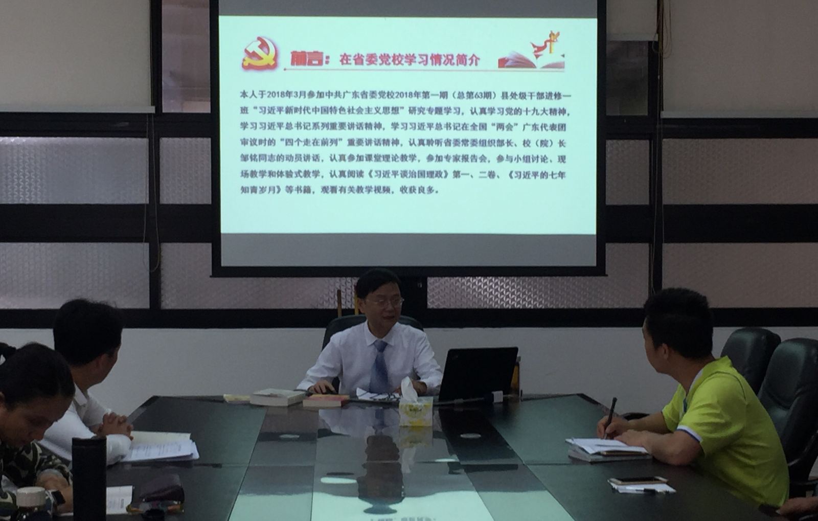 本次会议是学院党委贯彻落实上级党组织有关学习要求、营造浓厚氛围、掀起学习热潮、不断深化学习宣传贯彻好党的十九大精神和《习近平谈治国理政》第二卷的重要会议,会上,徐向东传达了学校党委关于党建工作的有关通知安排,并就下一阶段持续开展学习党的十九大精神、《习近平谈治国理政》第二卷,学习习近平总书记在全国“两会”广东代表团审议时的“四个走在全国前列”的重要讲话精神,向各师生党支部做布置,要求各支部制定好学习计划、开展好学习活动、总结好学习成效。 (图/文:蔡健)