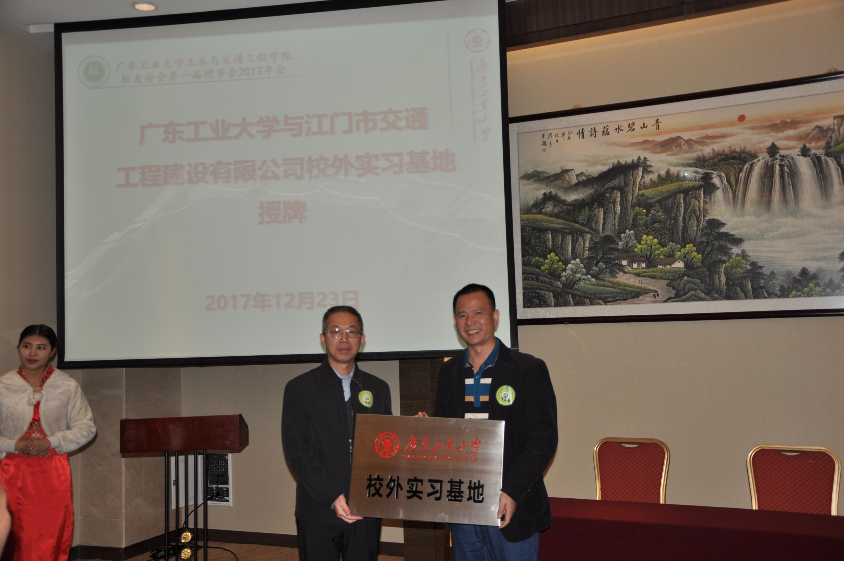 大会上举行了校外实习基地签约及授牌仪式。学校教务处处长李丽娟教授代表学校与江门市建设监理顾问有限公司总经理黄国生、广东蓬江建筑设计院有限公司院长薛峰、江门市交通工程建设有限公司副总经理廖志聪进行签约仪式;陈立中副校长向江门市建设监理顾问有限公司、广东蓬江建筑设计院有限公司、江门市交通工程建设有限公司授校外实习基地牌匾,黄国生先生、薛峰先生、廖志聪先生代表公司接牌。