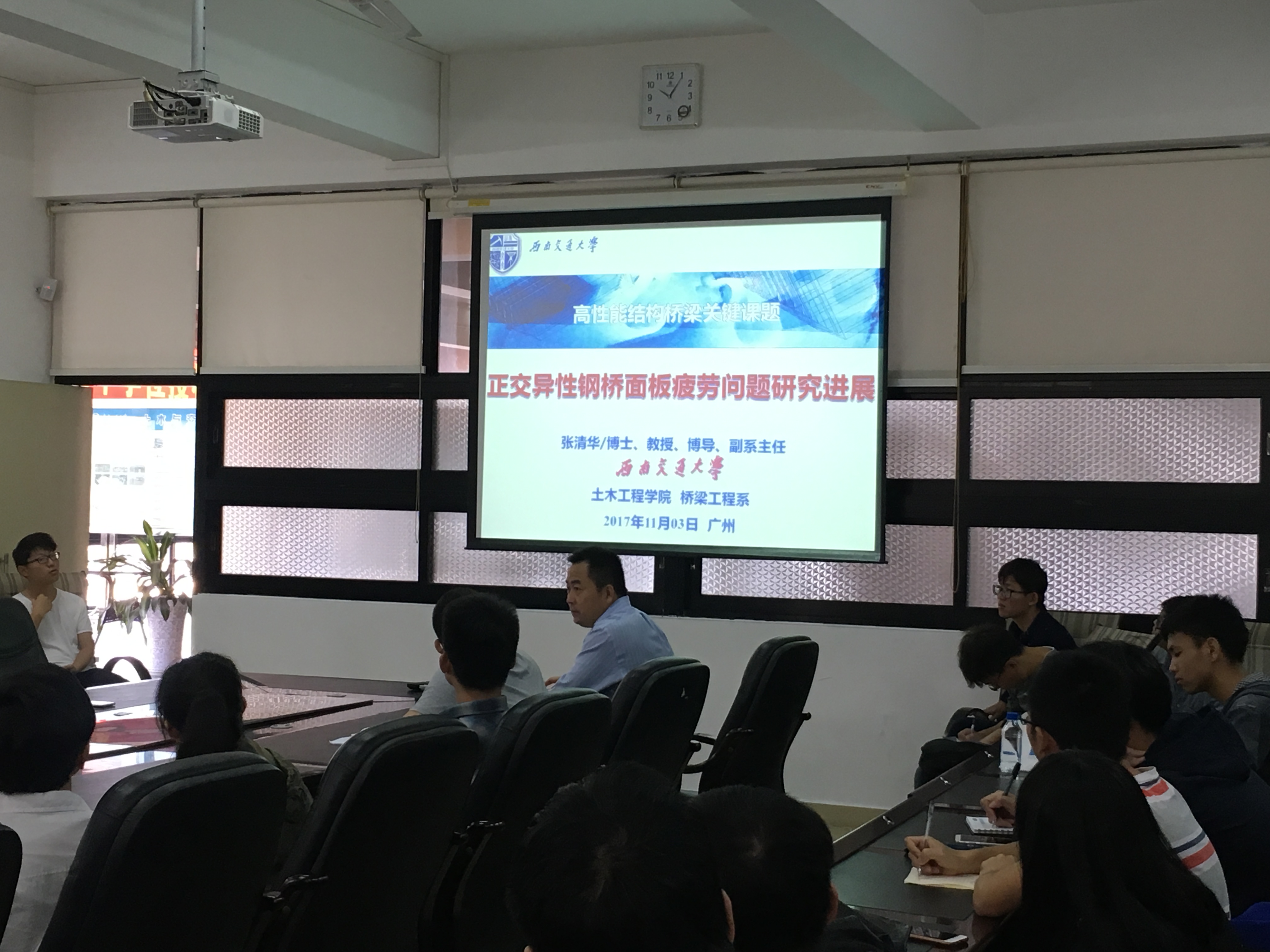 11月3日上午,应土木与交通工程学院邀请,西南交通大学桥梁工程系副主任张清华教授来我院进行《正交异性钢桥面板疲劳问题研究进展》的专题讲座。学院姜海波副院长,邹锦华老师,贺绍华老师,封硕老师及数十名研究生参加了讲座。