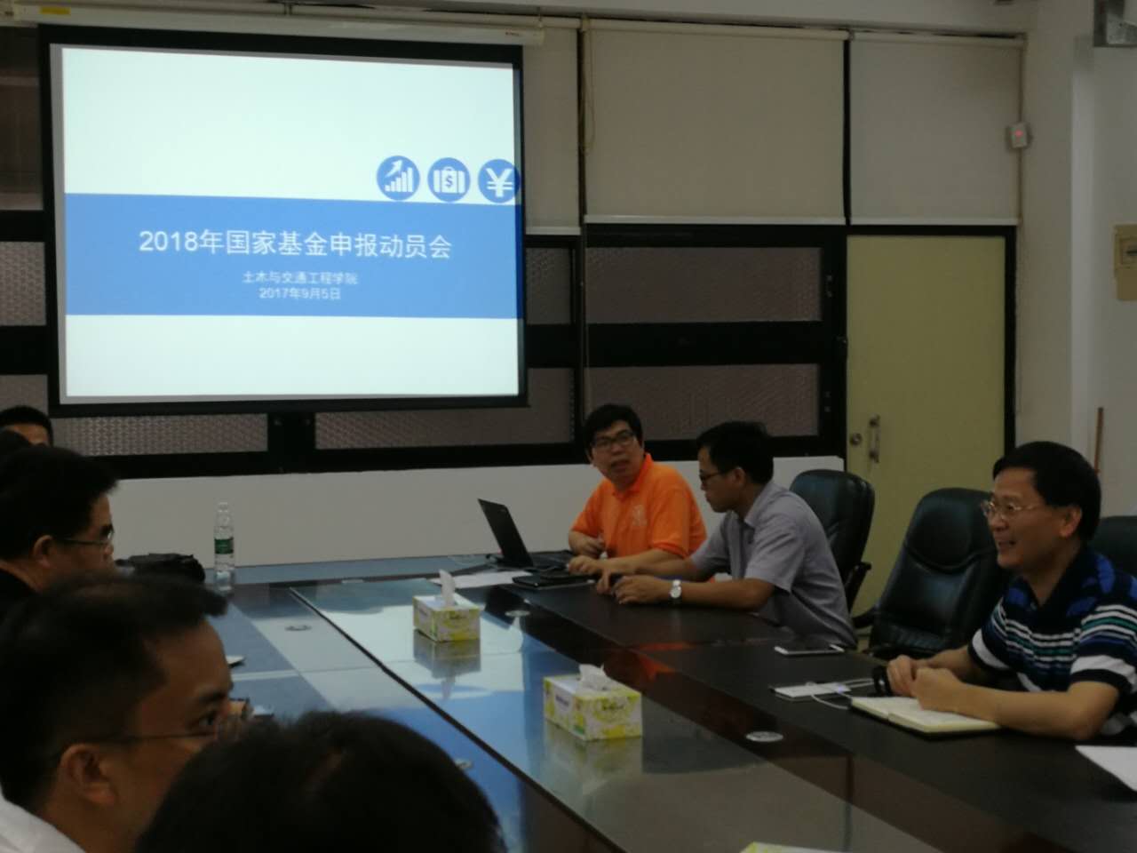 在实验2号楼502举行2018年度国家自然科学基金申报动员会,参加会议的有学院领导班子成员徐向东、吴炎海、姜海波,我院青年骨干教师和博士后人员。科技处处长程良伦,副处长陈辉、刘鑫等到会指导。会议由副院长姜海波主持。