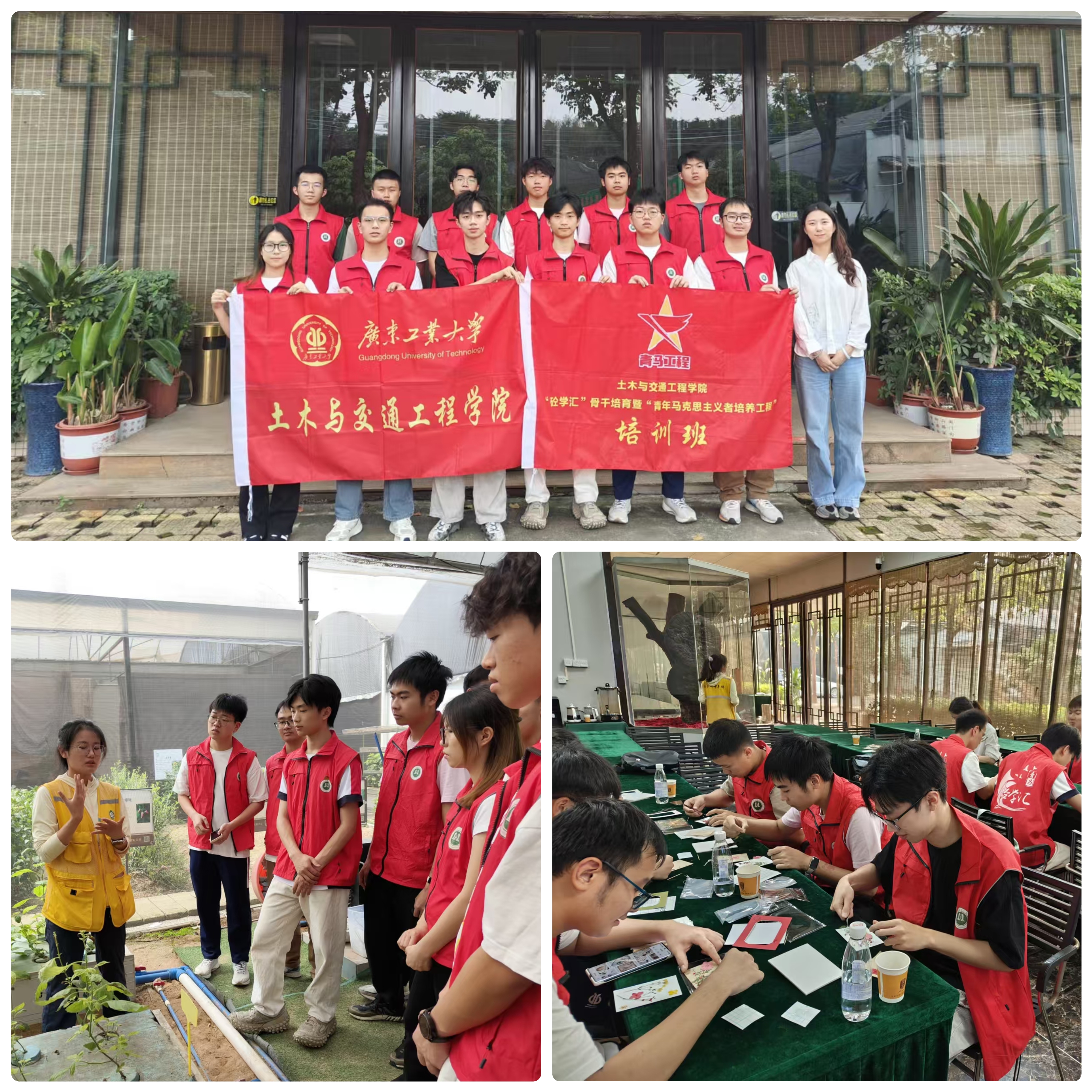 砼心班的学员们在刘思利老师的带领下走出校园,走进中大圣禾灵芝食用菌产业科技园,开启了一场"理论与实践结合、科技与文化交融"的实践之旅。在科技园里,学员们参观了灵芝种植基地,了解了现代科技在农业生产中的创新应用。随后,他们参与体验了药苗扦插实践和非遗岭南押花技艺的学习与创作,在知行合一中深化了对马克思主义实践观的理解,在传承非遗文化中增强了文化自信,更在亲身实践中厚植了家国情怀。