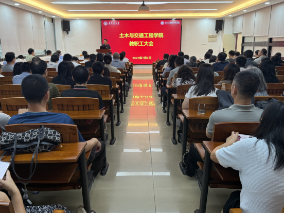 在实验2号楼520会议室召开教职工大会,会议由学院副院长何嘉年主持。