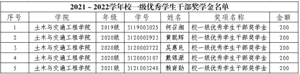 校一级优秀学生干部奖学金名单(5人):