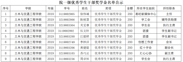(2019级)土木与交通工程学院学生奖学金公示