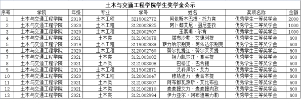 (新疆)少数民族奖学金获奖学生名单(13人):