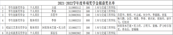 (2021级)土木与交通工程学院学生奖学金公示
