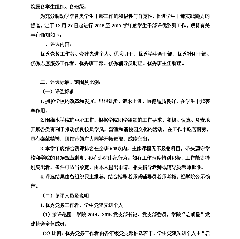 疯AV 2016至2017学年度学生干部评优工作通知
