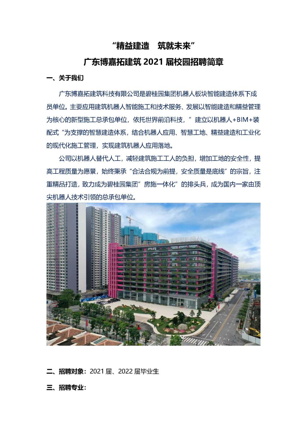 “精益建造 筑就未来” 广东博嘉拓建筑2021届校园招聘简章